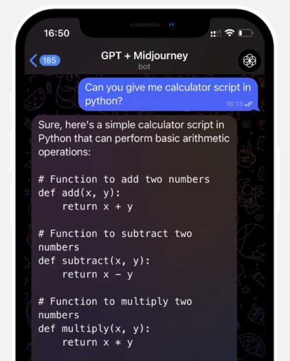 GPT 3.5, GPT 4.0 - base chat bot will answer in Telegram.